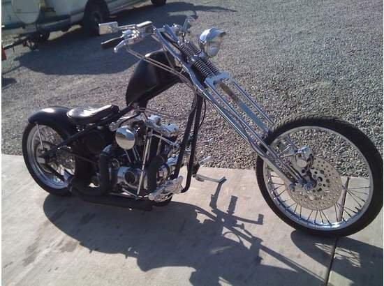 The wheels were painted white pearl, then they were spoked with chromed '72 sportster drum brakes.